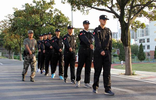 教官帶領(lǐng)校衛隊在校園內巡邏