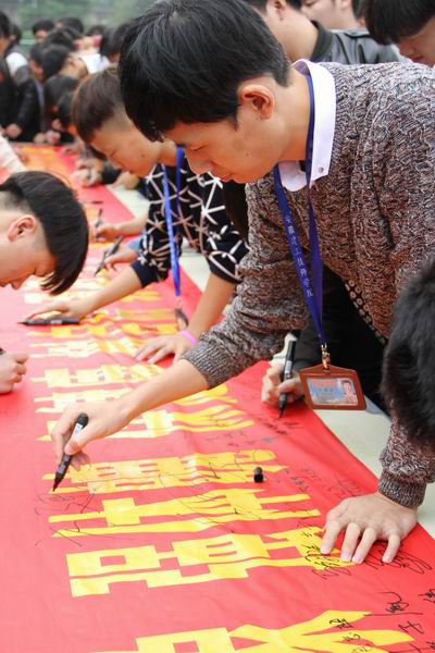 學(xué)院通過(guò)廣播、校報、宣傳欄、LED屏等多種宣傳方式宣傳《中等職業(yè)學(xué)校學(xué)生公約》,組織全校學(xué)生學(xué)習、誦讀、簽訂《學(xué)生公約》、觀(guān)看《救救孩子》法治教育紀錄片,并開(kāi)展了“學(xué)《學(xué)生公約》,做文明學(xué)生”宣誓、簽字、征文活動(dòng)。同學(xué)們紛紛表示,一定會(huì )遵守《學(xué)生公約》,繼續爭做文明學(xué)生,改掉身上的不良習慣,為共建文明和諧校園貢獻自己的一份力量。