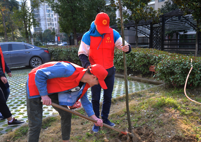 上午8:10參與活動(dòng)的同學(xué)們在校門(mén)口列隊出發(fā),8:30準時(shí)到達了望湖社區活動(dòng)中心門(mén)口。望湖社區王書(shū)記熱情接待了同學(xué)們,他首先感謝同學(xué)們的到來(lái),告訴同學(xué)們此次義務(wù)植樹(shù)的樹(shù)苗都是社區的老黨員們捐贈的,并對此次義務(wù)植樹(shù)的區域進(jìn)行了劃分,強調了樹(shù)苗種植的方法和注意事項。隨后,學(xué)院團委書(shū)記陳卓將同學(xué)們分為3組,分別由院團委的蔡克、江東波、駱念保三位副書(shū)記帶領(lǐng)到3個(gè)區域進(jìn)行種植,并叮囑同學(xué)們在種植過(guò)程中注意自身安全。