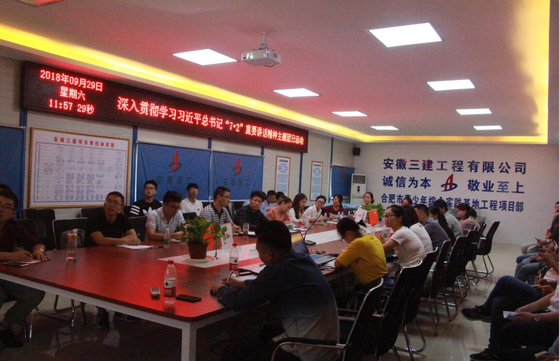 9月29日,安徽三建團委組織合肥地區團干及創(chuàng )建集體青年代表開(kāi)展了“學(xué)習‘7·2’重要講話(huà)精神落實(shí)團十八大工作部署”主題團日活動(dòng)。