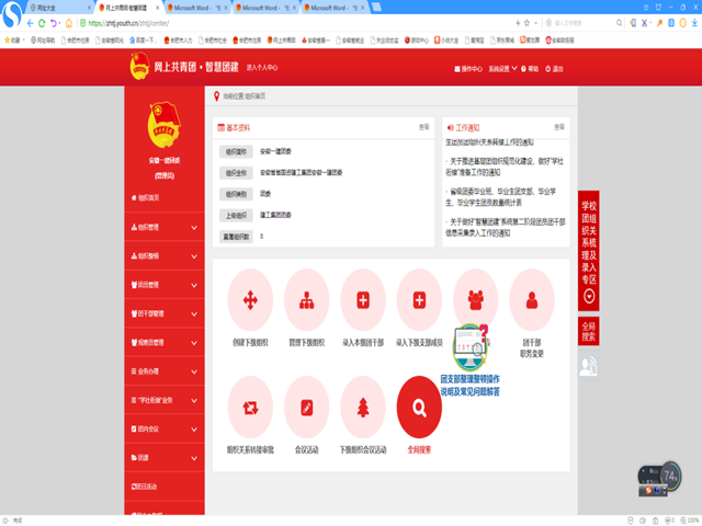 安徽一建團委按照團章及公司團委相關(guān)制度,健全班子,按期換屆選舉。制定完善的團委工作標準、管理標準,認真實(shí)施目標管理,嚴格執行團委例會(huì )、工作匯報、集中學(xué)習等。為深化共青團改革,推進(jìn)團的組織創(chuàng )新、工作創(chuàng )新,確保本公司團員管理工作,安徽一建加強“智慧團建”貫徹工作,推動(dòng)團建工作信息化發(fā)展。