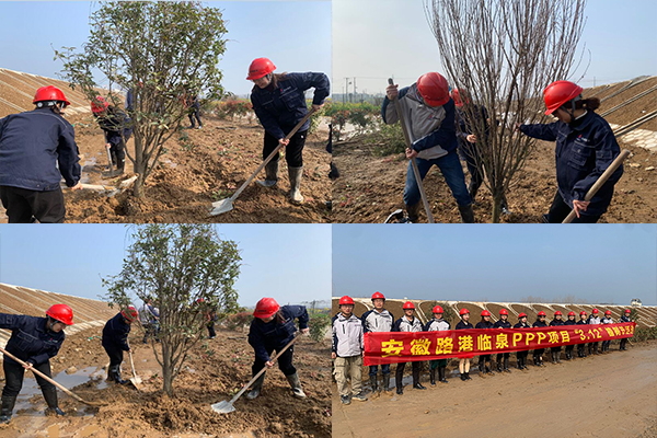 臨泉PPP項目團支部組織團員青年開(kāi)展植樹(shù)活動(dòng)。植樹(shù)現場(chǎng),在大家精神抖擻、熱情高漲,勁往一處使、汗往一處流,積極發(fā)揮青年團結、互助、友愛(ài)的精神,全心投入植樹(shù)活動(dòng),一起分享種植樹(shù)木的樂(lè )趣。