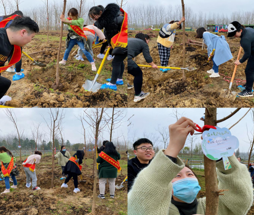 整個(gè)活動(dòng)一直進(jìn)行到中午12點(diǎn),他們忘記了寒冷,忘記了勞累,只記得手中的工具和種下的樹(shù)苗,在大家的辛勤勞動(dòng)下,無(wú)數株鮮活的生命在微風(fēng)的吹拂下仿佛吐出了點(diǎn)點(diǎn)綠芽,春天的訊息在枝頭跳動(dòng),大家植樹(shù)的激情在心底躍動(dòng),他們或是在自己栽種的樹(shù)旁合影留念,或是在一旁靜靜地看著(zhù)自己的勞動(dòng)成果。