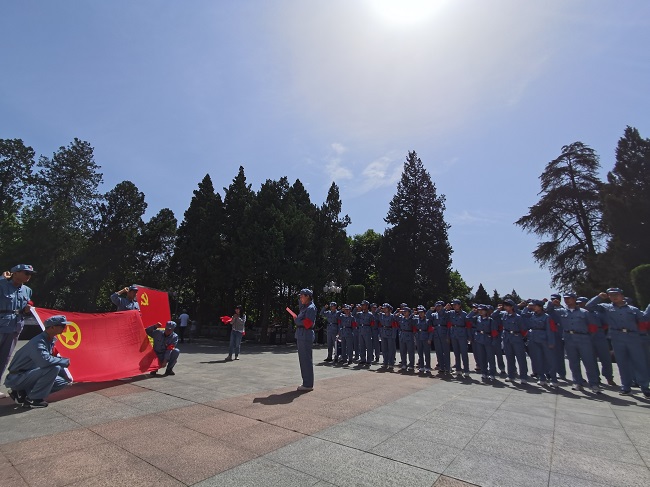 在統一換上紅軍服裝后,青年團員們首先來(lái)到金寨紅軍文化廣場(chǎng)。在革命烈士紀念塔下,面對鮮艷的中國共產(chǎn)主義青年團團旗,公司團委書(shū)記帶領(lǐng)到場(chǎng)青年團員重溫入團誓詞,牢記初心使命,緬懷革命先烈,傳承五四精神,并對榮獲公司2020年度“五四紅旗團支部”與“優(yōu)秀團員”的集體與個(gè)人進(jìn)行了表彰。