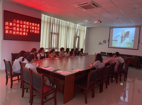 會(huì )上,分公司團支部組織開(kāi)展改革開(kāi)放專(zhuān)題學(xué)習教育活動(dòng),觀(guān)看紀錄片《中國改革開(kāi)放的故事》。該片是由英國廣播公司制片人邁克爾·伍德撰稿并主持,主要圍繞“人心所向”、“走向世界”、“中國創(chuàng )造”、“綠色中國夢(mèng)”以及“未來(lái)之路”五個(gè)方面所展開(kāi),從普通中國人的視角,以相當接地氣的方式講述了中國的歷史和傳承,透過(guò)鮮活的鏡頭語(yǔ)言,客觀(guān)展示出中國改革開(kāi)放的脈絡(luò )和成就。