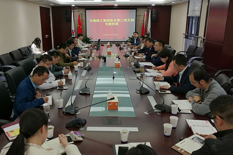 10月13日,在安建大廈2818會(huì )議室,應機關(guān)第二黨支部邀請,集團總經(jīng)理、黨委副書(shū)記劉家靜同志為機關(guān)第二黨支部全體黨員授了題為“緊密結合企業(yè)中心工作,貫徹落實(shí)‘兩學(xué)一做’學(xué)習教育”的專(zhuān)題黨課。第二支部黨員、群眾共27人參加學(xué)習,集團總會(huì )計師牛曉峰同志以普通黨員的身份參加會(huì )議并聽(tīng)黨課。會(huì )議由第二支部書(shū)記朱金蓉同志主持。