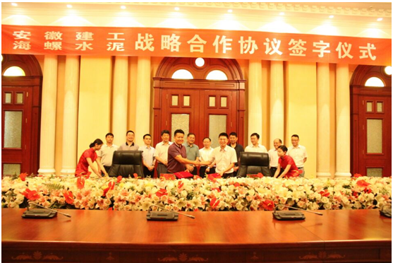 2016年6月21日,安徽建工集團與海螺集團戰略合作協(xié)議在安徽蕪湖簽訂。集團黨委委員、副總經(jīng)理楊廣亮與海螺集團黨委委員、海螺水泥總經(jīng)理吳斌進(jìn)行了友好的會(huì )談并出席簽約儀式,安徽建工建材董事長(cháng)、總經(jīng)理張鍵與海螺水泥銷(xiāo)售部部長(cháng)虞水代表雙方簽署了戰略合作協(xié)議。