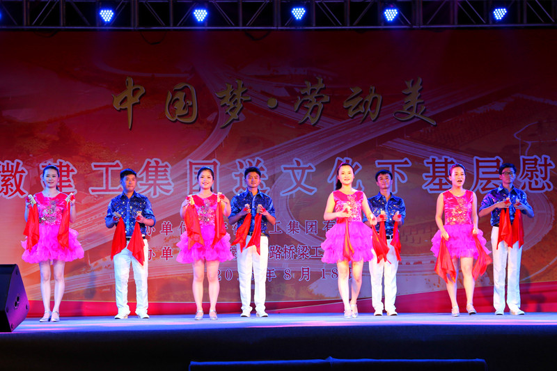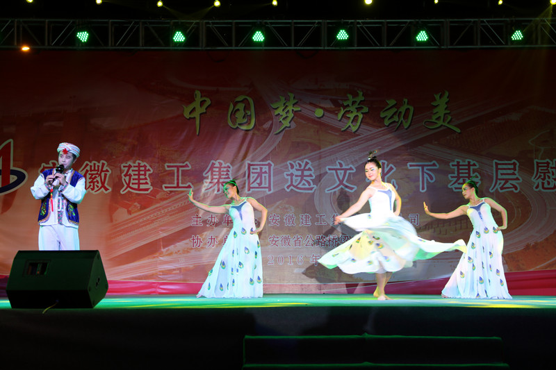 慰問(wèn)演出在安建建設公司選送的舞蹈《歡樂(lè )地跳吧》動(dòng)感活潑的旋律中正式開(kāi)始,安徽安裝公司選送的快板舞蹈《和諧建工繪宏圖》表演整齊劃一,聲聲竹板,唱出建工新氣象;由路港公司選送的小品《安全一家親》通過(guò)幽默風(fēng)趣的語(yǔ)言,在陣陣笑聲中,提示了安全責任意識,給人以啟迪;三建公司選送的情景朗誦《勞模風(fēng)采踐真情》,形象展現了甘于奉獻、爭創(chuàng )一流的勞模精神;建科院選送的現代舞《咱們工人有力量》用藝術(shù)的語(yǔ)言,歌頌了建工人的風(fēng)采和勞動(dòng)美。演出中,主持人還邀請現場(chǎng)的工友為觀(guān)眾即興演唱,博得了滿(mǎn)堂喝彩。演出結束后,觀(guān)眾們還對最受歡迎的節目進(jìn)行了現場(chǎng)投票,并進(jìn)行了現場(chǎng)觀(guān)眾幸運抽獎活動(dòng)。首場(chǎng)演出得到了協(xié)辦單位安徽省公路橋梁公司的大力支持。整場(chǎng)慰問(wèn)演出氣氛熱烈,文明歡快。
