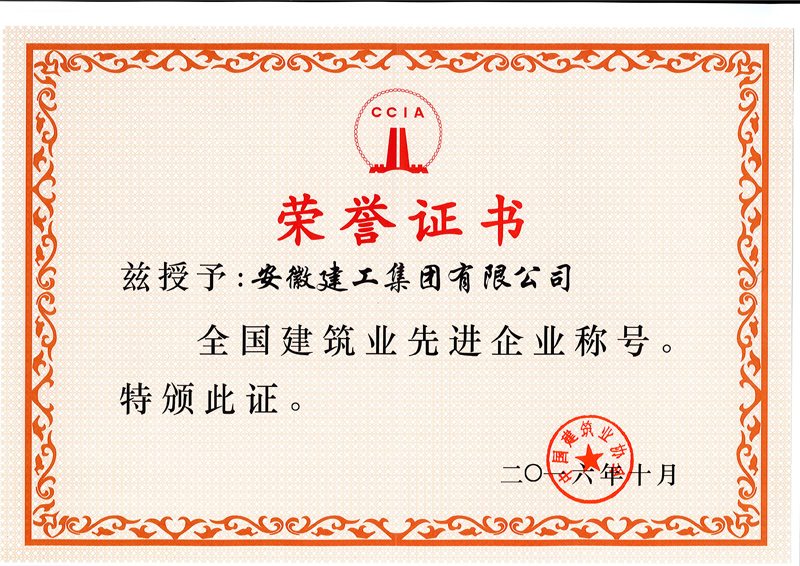 10月31日,中國建筑業(yè)協(xié)會(huì )在北京懷柔召開(kāi)慶祝中國建筑業(yè)協(xié)會(huì )成立30周年暨建筑業(yè)改革發(fā)展交流會(huì ),會(huì )上表彰了全國建筑業(yè)先進(jìn)企業(yè)和先進(jìn)工作者。安徽建工集團再次被評為全國建筑業(yè)先進(jìn)企業(yè),集團公司總經(jīng)理劉家靜被評為全國建筑業(yè)先進(jìn)工作者。