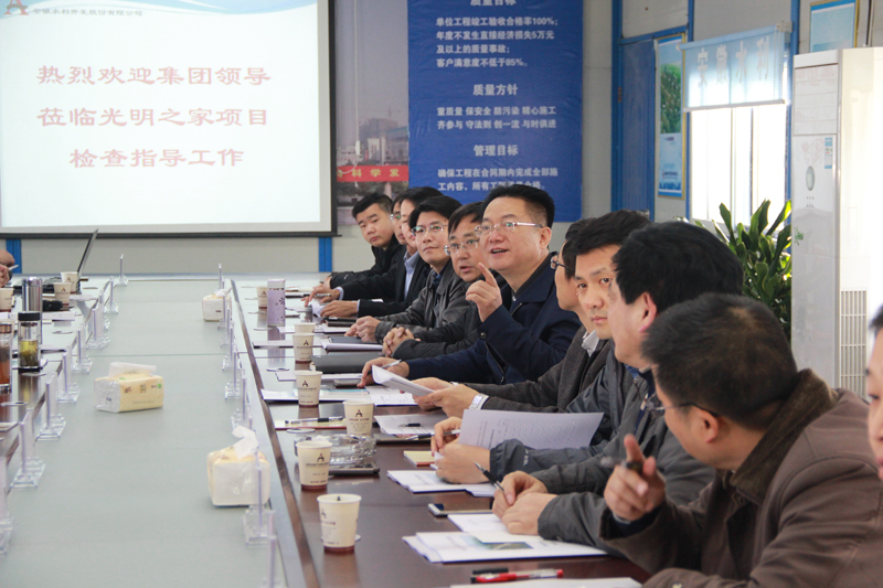 12月5日上午,集團公司總經(jīng)理、黨委副書(shū)記、董事劉家靜在集團公司副總經(jīng)理王厚良及相關(guān)部門(mén)陪同下,赴安徽水利合肥分公司調研,并在水利合肥公司承建的新站區光明之家二標項目部召開(kāi)現場(chǎng)會(huì )。安徽水利副總經(jīng)理程鵬、總工程師董傳明、財務(wù)總監徐亮及股份公司相關(guān)部門(mén)、合肥公司領(lǐng)導班子成員及項目部有關(guān)人員陪同調研。