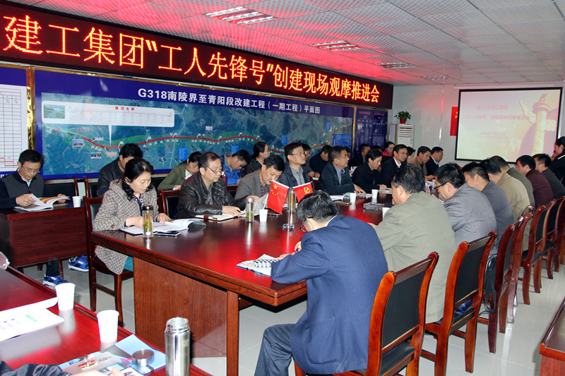 會(huì )前,與會(huì )人員實(shí)地參觀(guān)了該項目部施工現場(chǎng)、辦公區和生活區,聽(tīng)取了項目部主要負責人就項目部施工生產(chǎn)情況以及 “工人先鋒號”創(chuàng )建情況的介紹。G318改建(一期)工程項目,是池州市“十二五”重點(diǎn)交通建設項目,項目部積極響應集團公司工會(huì )和路港公司號召,以爭創(chuàng )“一流工作、一流服務(wù)、一流業(yè)績(jì)、一流團隊”為目標,緊密結合項目實(shí)際,積極組織開(kāi)展“工人先鋒號”創(chuàng )建活動(dòng),創(chuàng )建工作有組織,有方案,有目標,有措施,有成果,項目部在艱巨的生產(chǎn)任務(wù)面前,克服困難,取得了顯著(zhù)的經(jīng)濟效益和社會(huì )效益,成為一支團結戰斗的集體。安徽路港公司黨委書(shū)記馬斌發(fā)表熱情洋溢的講話(huà),對各單位代表的到來(lái)表示熱烈的歡迎,對路港公司生產(chǎn)經(jīng)營(yíng)和創(chuàng )建“工人先鋒號”情況作了介紹,表示要加強交流,共同推動(dòng)“工人先鋒號”建設工作深入開(kāi)展。