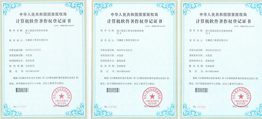 6月16日,由集團信息管理部自主開(kāi)發(fā)的《建工集團經(jīng)營(yíng)管理系統V1.0》、《建工集團工程項目管理系統V1.0》、《建工集團項目安全管理系統V1.0》獲得計算機軟件著(zhù)作權登記證書(shū)(編號:軟著(zhù)登字第1844682號、軟著(zhù)登字第1840900號、軟著(zhù)登字第1840932號)。