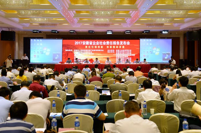 7月19日下午,2017安徽省企業(yè)社會(huì )責任報告發(fā)布會(huì )在合肥豐大國際大酒店隆重召開(kāi)。中國工業(yè)經(jīng)濟聯(lián)合會(huì )社會(huì )責任促進(jìn)中心主任王曉光出席發(fā)布會(huì )并致辭。發(fā)布會(huì )由安徽省工業(yè)經(jīng)濟聯(lián)合會(huì )會(huì )長(cháng)安進(jìn)主持,省國資委、發(fā)改委、經(jīng)信委、民政廳、人社廳、商務(wù)廳、環(huán)保廳、質(zhì)監局、安監局、總工會(huì )等省直部門(mén)應邀參加了發(fā)布會(huì )。集團公司副總經(jīng)理霍向東及辦公室負責同志代表集團參會(huì )。