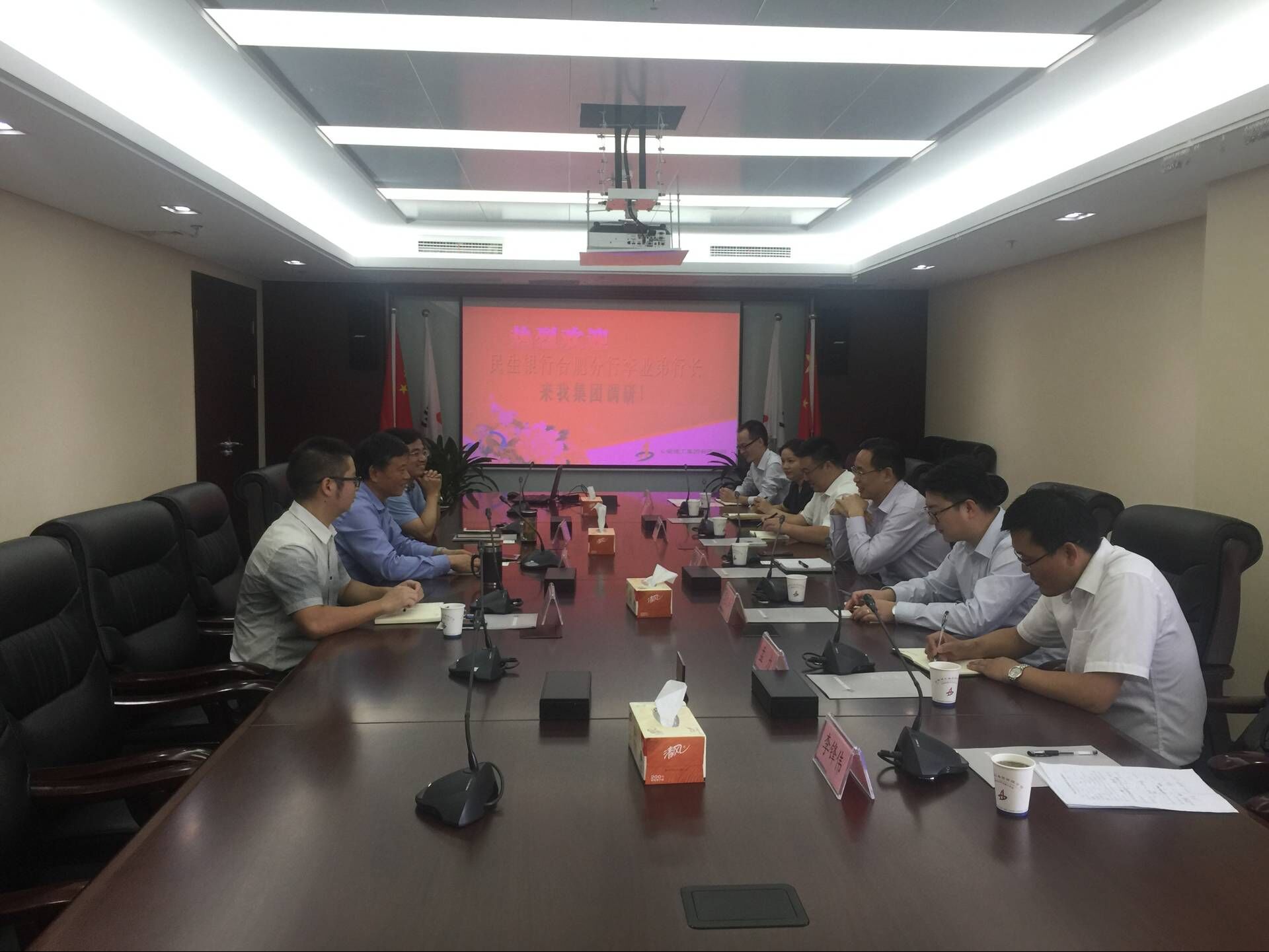 2017928日上午,中國民生銀行合肥分行行長(cháng)李業(yè)弟一行來(lái)集團公司調研交流,集團公司總會(huì )計師牛曉峰會(huì )見(jiàn)李業(yè)弟行長(cháng)一行,并在集團26樓多媒體會(huì )議室主持召開(kāi)了座談交流會(huì )。