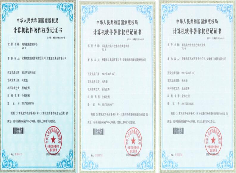 依托集團在研課題“塔式起重機遠程監控系統關(guān)鍵技術(shù)研究與應用”,由集團及所屬安徽建機公司合作提交的“塔吊租賃管理平臺v1.0”、“塔吊監控實(shí)時(shí)狀態(tài)遠程操作系統V1.0”、“塔吊監控在線(xiàn)運行維護系統V1.0”三個(gè)軟件著(zhù)作權經(jīng)中國版權保護中心審核后,獲得中華人民共和國國家版權局原始認定并予以登記,從頒證之日起,這三項軟件的版權得到中國版權保護中心的有效保護。