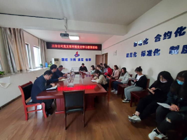 三分公司黨支部開(kāi)展黨史學(xué)習教育活動(dòng),分公司機關(guān)全體人員參加,活動(dòng)由支部書(shū)記陳習武主持。首先,陳習武帶領(lǐng)大家學(xué)習了二建黨發(fā)【2021】13號文《安徽二建公司黨委關(guān)于開(kāi)展黨史學(xué)習教育的工作方案》,并就分公司黨支部的黨史學(xué)習教育活動(dòng)做了詳細安排部署,要求全體黨員干部把思想和行動(dòng)統一到集團、公司黨委的決策部署上來(lái),高標準、高質(zhì)量完成黨史學(xué)習教育各項任務(wù),努力做到學(xué)史明理、學(xué)史增信、學(xué)史崇德、學(xué)史力行,以?xún)?yōu)異成績(jì)迎接建黨100周年。隨后,陳習武帶領(lǐng)大家上了一堂生動(dòng)的黨史課?!皬纳虾J瘞扉T(mén)到嘉興南湖,一艘小小紅船承載著(zhù)人民的重托、民族的希望,越過(guò)急流險灘,穿過(guò)驚濤駭浪,成為領(lǐng)航中國行穩致遠的巍巍巨輪?!?。通過(guò)視頻和講解相結合,為大家敘述了從中國共產(chǎn)黨成立到建立新中國,28年間,黨召開(kāi)了一次次重要會(huì )議。這些會(huì )議作出的決策,指引了中國革命的方向,推動(dòng)了歷史進(jìn)程,具有里程碑意義。大家紛紛表示,將從黨史中汲取智慧和力量,堅定信仰信念,進(jìn)一步提高黨性修養,不忘初心,以實(shí)際行動(dòng)發(fā)揮好黨員干部的模范帶頭作用,積極投入到干事創(chuàng )業(yè)中去,為分公司的發(fā)展添磚加瓦。