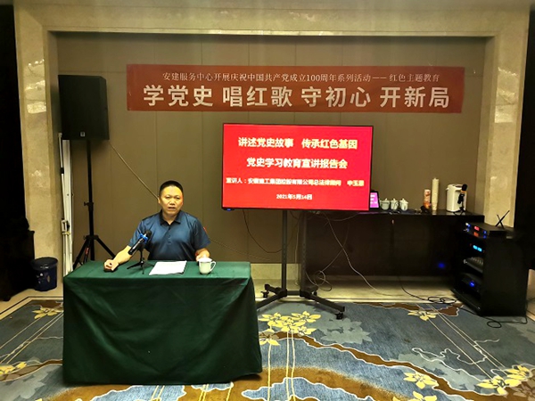 5月14日,集團控股公司總法律顧問(wèn)、集團黨史學(xué)習教育第六宣講組組長(cháng)申玉恩為服務(wù)中心全體員工就黨史學(xué)習教育作專(zhuān)題宣講報告。會(huì )議由中心黨總支書(shū)記、總經(jīng)理施愛(ài)民主持。