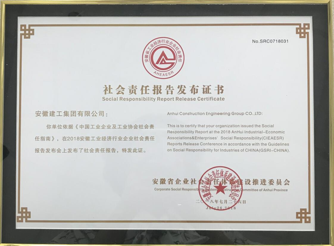 726日上午,2018年度安徽省企業(yè)社會(huì )責任報告發(fā)布會(huì )于合肥豐樂(lè )大酒店隆重舉行,包括安徽建工集團控股有限公司在內的共101家企業(yè)參與此次社會(huì )責任報告發(fā)布。