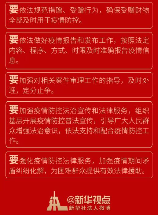 2月5日下午,中共中央總書(shū)記、國家主席、中央軍委主席、中央全面依法治國委員會(huì )主任習近平主持召開(kāi)中央全面依法治國委員會(huì )第三次會(huì )議強調,全面提高依法防控依法治理能力,為疫情防控提供有力法治保障。