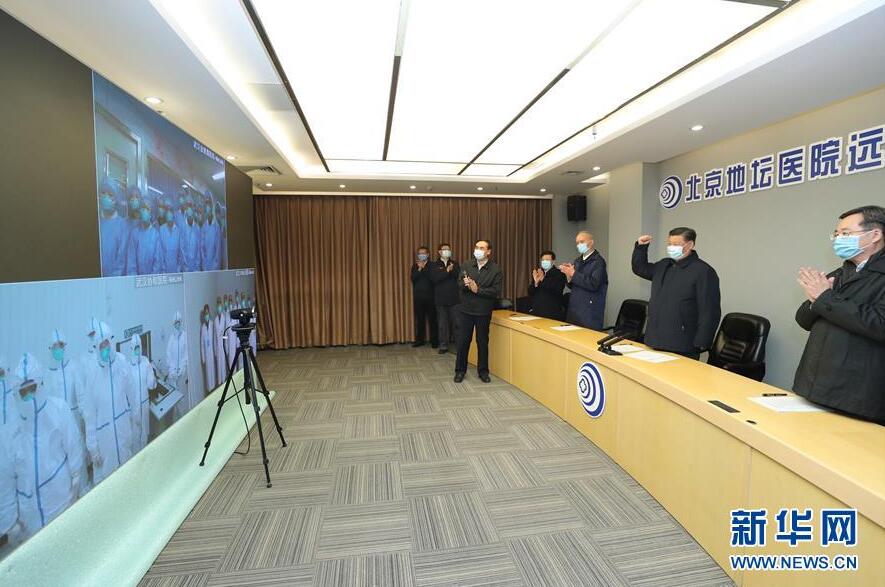 習近平十分牽掛湖北和武漢的疫情。在地壇醫院遠程診療中心,習近平通過(guò)視頻連線(xiàn)武漢市收治新冠肺炎患者的金銀潭醫院、協(xié)和醫院、火神山醫院,向疫情防控一線(xiàn)的醫務(wù)工作者、干部職工和人民解放軍指戰員了解情況、聽(tīng)取意見(jiàn)和建議。他強調,全國廣大醫務(wù)工作者不忘初心、牢記使命,響應黨的號召,義無(wú)反顧沖上疫情防控第一線(xiàn),同時(shí)間賽跑,與病魔較量,頑強拼搏、日夜奮戰,展現了對黨、對人民高度負責的精神面貌。他指出,現在疫情防控正處于膠著(zhù)對壘狀態(tài),廣大醫務(wù)工作者一定要堅持下去,發(fā)揚特別能吃苦、特別能戰斗的精神,發(fā)揮火線(xiàn)上的中流砥柱作用,始終把人民群眾生命安全和身體健康放在首位,全力以赴救治患者,打好武漢保衛戰、湖北保衛戰。