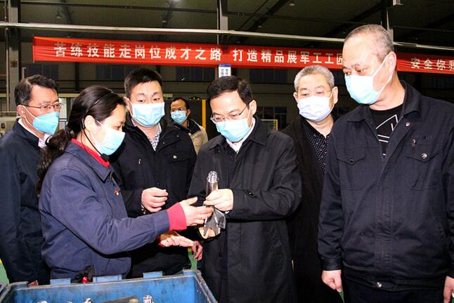 34日下午,李中赴軍工集團調研,了解企業(yè)疫情防控、復工復產(chǎn)和經(jīng)營(yíng)發(fā)展情況,對企業(yè)在抓好疫情防控的同時(shí)積極組織軍品生產(chǎn)供應、努力為國防建設提供裝備保障給予充分肯定。他指出,軍工集團歷經(jīng)艱苦光輝的創(chuàng )業(yè)歷程,為國防現代化建設作出了積極貢獻。下一步要在抓好疫情防控的同時(shí),突出軍品特色,堅持創(chuàng )新驅動(dòng),加強黨的建設,奮力走出一條軍民融合發(fā)展的新路子。隨后,李中前往軍工集團所屬神劍科技股份公司,實(shí)地察看生產(chǎn)一線(xiàn)疫情防控和復工復產(chǎn)情況。在神劍公司電裝工房,李中詳細了解軍品科研產(chǎn)品試驗情況,他指出,要下好科技創(chuàng )新先手棋,堅持自主創(chuàng )新、協(xié)同創(chuàng )新雙輪驅動(dòng),繼續做強做優(yōu)做大軍品產(chǎn)業(yè)。在神劍公司加機分廠(chǎng),李中與車(chē)間技術(shù)帶頭人深入交流,要求集團黨委堅持以人才為本,為科技人員創(chuàng )新創(chuàng )造創(chuàng )業(yè)提供更加有力的保障。當得知加機分廠(chǎng)在安全防控的前提下,已實(shí)現全員兩班輪替生產(chǎn)時(shí),李中十分欣慰,再三叮囑加機分廠(chǎng)負責同志要堅決落實(shí)疫情防控和安全生產(chǎn)第一責任人職責,統籌做好職工“8小時(shí)以?xún)?/SPAN>“8小時(shí)以外的管理,確保安全有序實(shí)現滿(mǎn)產(chǎn)。