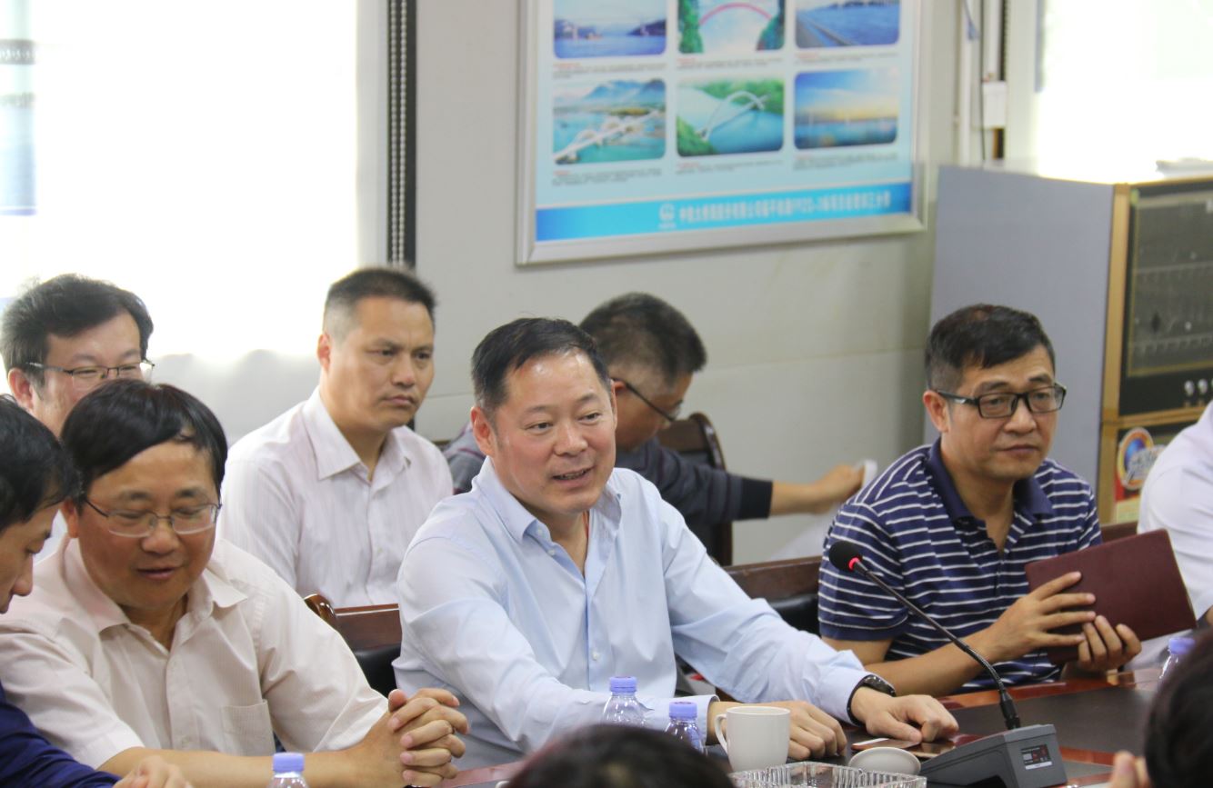 隨后,觀(guān)摩團乘船來(lái)到大橋局福平鐵路FPZQ-3標項目部,在項目會(huì )議室,雙方舉行了觀(guān)摩交流會(huì )議。中鐵大橋局副總工程師兼項目總工程師王東輝用視頻、PPT形式向觀(guān)摩團一行講解了平潭海峽公鐵兩用大橋項目的工程概況及特點(diǎn)和難點(diǎn)、項目主要創(chuàng )新點(diǎn)、項目施工組織管理、主要施工方案、項目質(zhì)量安全管理、四新技術(shù)、科研情況及項目最新進(jìn)展。項目經(jīng)理姚華等就觀(guān)摩人員提出的問(wèn)題一一做了解答,并交流了個(gè)人體會(huì )。