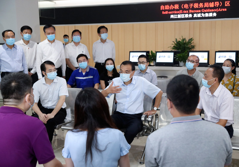 在政務(wù)大廳,重慶匯報了深化放管服改革情況。正在辦事的小微企業(yè)人員告訴總理,國家減稅降費力度超出預期,企業(yè)普遍受益,得以生存。李克強說(shuō),不僅要減稅降費,還要進(jìn)一步降門(mén)檻,更大激發(fā)市場(chǎng)主體活力。重慶推出網(wǎng)上政務(wù)服務(wù)叫“渝快辦”,我們推進(jìn)放管服改革就是要讓群眾辦事愉快、有獲得感。