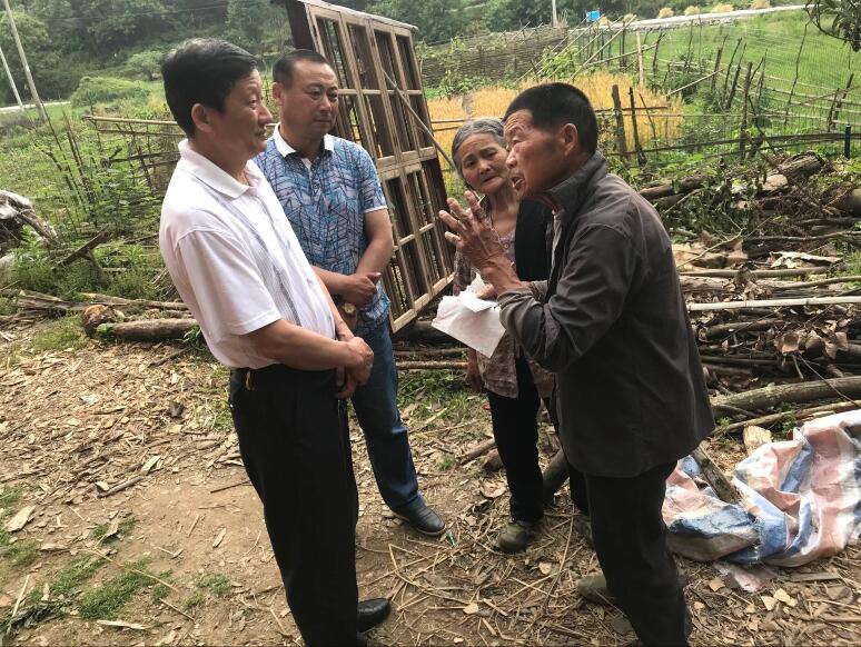 圖為鄭軍書(shū)記(靠左白衣)看望貧困戶(hù)