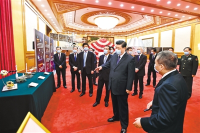 習近平在會(huì )見(jiàn)探月工程嫦娥五號任務(wù)參研參試人員代表并參觀(guān)月球樣品和探月工程成果展覽時(shí)強調