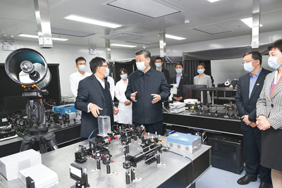 清華大學(xué)主樓二層,展示了學(xué)校近年來(lái)重點(diǎn)教學(xué)科研成果。習近平聽(tīng)取了關(guān)于增強自主創(chuàng )新能力、助力世界主要科學(xué)中心和創(chuàng )新高地建設、提高人文社會(huì )學(xué)科教育研究水平等情況介紹,對清華大學(xué)取得的成績(jì)給予充分肯定。習近平指出,要堅持中國特色社會(huì )主義教育發(fā)展道路,充分發(fā)揮科研優(yōu)勢,增強學(xué)科設置的針對性,加強基礎研究,加大自主創(chuàng )新力度,并從我國改革發(fā)展實(shí)踐中提出新觀(guān)點(diǎn)、構建新理論,努力構建中國特色、中國風(fēng)格、中國氣派的學(xué)科體系、學(xué)術(shù)體系、話(huà)語(yǔ)體系。