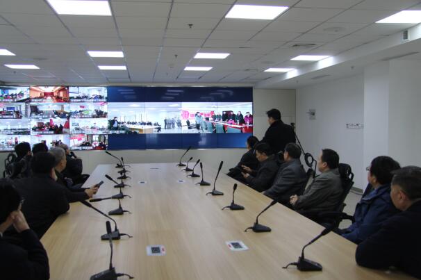 在安建大廈26樓,剛剛建成的可視化調度中心正在工作人員的操作下精確運轉,屋內濟濟一堂,一片新春氣象。黨委書(shū)記、董事長(cháng)趙時(shí)運攜控股、股份兩級領(lǐng)導班子成員及機關(guān)有關(guān)部門(mén)負責同志,通過(guò)可視化系統,與堅守項目的同志們通話(huà)。來(lái)自安建投資、安徽水利、安徽路橋、安徽路港、安徽交航的7個(gè)項目與集團本部進(jìn)行了視頻交流。