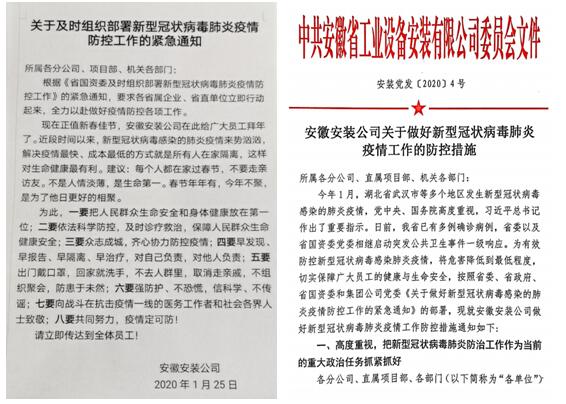 多措并舉防疫情 齊頭并進(jìn)抓落實(shí)——安徽安裝公司防控疫情工作紀實(shí)