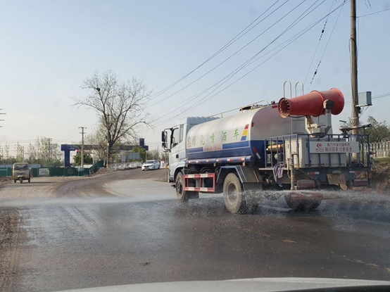 氣溫逐漸升高,項目部每天都安排灑水車(chē)多頻次清灑場(chǎng)區內外路面,進(jìn)行噴灑、降溫降塵工作,嚴格按要求保持工地現場(chǎng)衛生整潔。