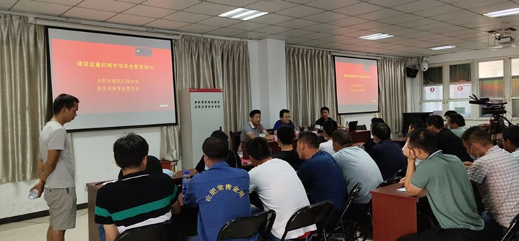 合肥市建筑工程協(xié)會(huì )安全設備專(zhuān)業(yè)委員會(huì )特別邀請合肥市城鄉建設局質(zhì)量安全處處長(cháng)沈國寶、合肥市建筑工程協(xié)會(huì )安全設備專(zhuān)委會(huì )主任張濤蒞臨指導,起重機械設備專(zhuān)家侯恩敏擔任主講,培訓分為開(kāi)展危險預知、講解操作要領(lǐng)、傳授注意事項和安全對策三大方面內容。