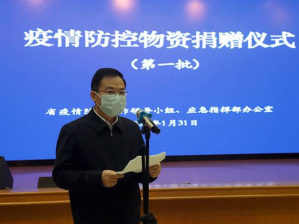 1月31日晚,省屬企業(yè)第一批新型冠狀病毒感染肺炎疫情防控物資捐贈儀式在省防控指揮部辦公室舉行。省委常委、常務(wù)副省長(cháng)、省疫情防控工作領(lǐng)導小組常務(wù)副組長(cháng)、應急指揮部副總指揮鄧向陽(yáng)出席儀式并講話(huà),省政府副秘書(shū)長(cháng)李必方主持儀式,省國資委黨委書(shū)記、主任李中代表捐贈方發(fā)言。省國資委副主任、黨委委員楊東坡和省衛健委、省經(jīng)信廳及相關(guān)省屬企業(yè)主要負責同志參加儀式。建工控股黨委副書(shū)記、總經(jīng)理、董事劉家靜代表集團公司,向省疫情防控指揮辦捐贈首批境外采購的醫療物資。