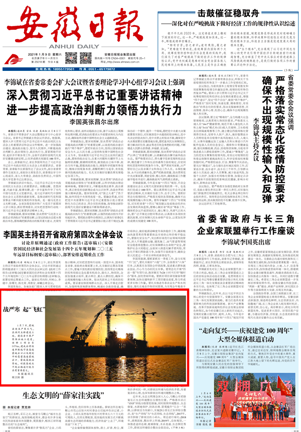 近日,《安徽日報》頭版以