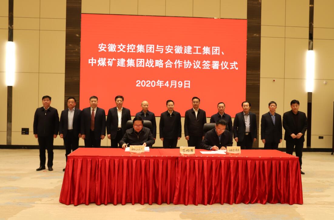 4月9日下午,安徽交控集團與安徽建工集團、中煤礦建集團戰略合作協(xié)議簽約儀式在合肥舉行。省國資委黨委書(shū)記、主任李中出席儀式并發(fā)表講話(huà)。安徽交控集團黨委書(shū)記、董事長(cháng)項小龍,安徽建工集團黨委書(shū)記、董事長(cháng)趙時(shí)運,中煤礦建集團黨委書(shū)記、董事長(cháng)趙士兵先后致辭。
