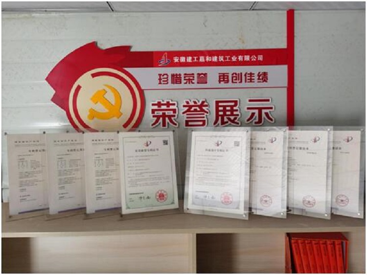 嘉和建筑產(chǎn)業(yè)園高度重視技術(shù)研發(fā)實(shí)力提升,已承接了多個(gè)相關(guān)課題的研發(fā),并取得階段性成果。其中《裝配式產(chǎn)業(yè)助力蚌埠市建筑業(yè)綠色轉型升級研究》課題獲得由蚌埠市“社會(huì )科學(xué)規劃政府資助項目”立項,成為該市智庫建設和社會(huì )科學(xué)規劃立項唯一由生產(chǎn)企業(yè)申報成功的建筑行業(yè)領(lǐng)域課題。先后取得一種用于PC構件養護窯螺栓預埋的裝配式定位裝置、裝配式定位器(PC構件養護窯螺栓預埋用)、通風(fēng)外墻、一種建筑內隔墻、鋼結構復合樓板、一種輕鋼結構房屋墻壁、樓板結構、一種輕鋼結構建筑屋面等多項發(fā)明專(zhuān)利權,7項專(zhuān)利正在申報中。