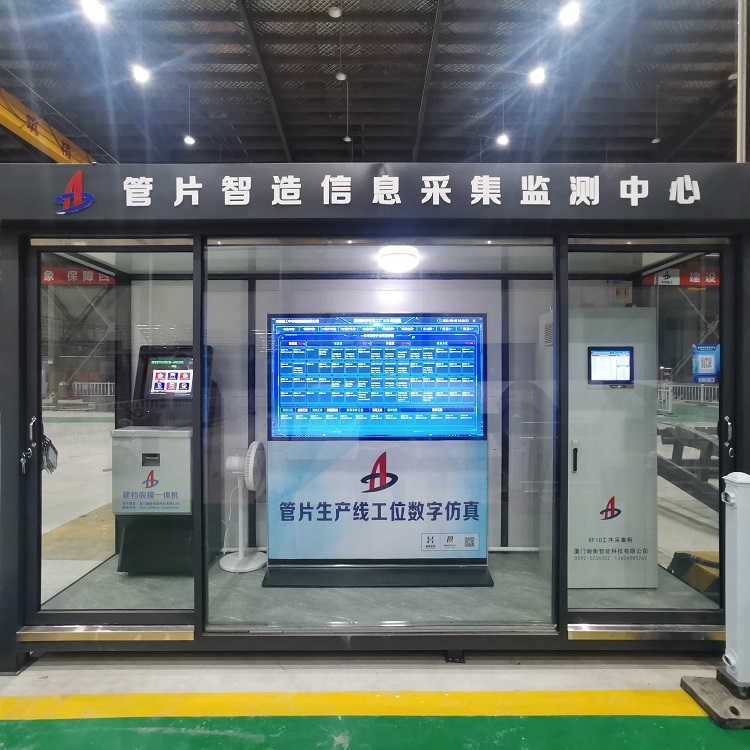 在管片生產(chǎn)環(huán)節,通過(guò)RFID自動(dòng)掃描設備每一個(gè)模具及每一片管片上的電子標簽,可以獲取每一個(gè)模具及綁定的每一片管片的所有流程信息。在驗收環(huán)節,運用5G互聯(lián)網(wǎng)技術(shù),通過(guò)PDA掃碼的方式,將管片的質(zhì)檢信息進(jìn)行線(xiàn)上質(zhì)檢、拍照留底;通過(guò)BIM3D建模的技術(shù),將管片生產(chǎn)的全過(guò)程信息進(jìn)行直觀(guān)的展示說(shuō)明。同時(shí),通過(guò)物聯(lián)網(wǎng)技術(shù),將地磅稱(chēng)重系統、拌和站入料及出料系統、生產(chǎn)線(xiàn)生產(chǎn)系統、后臺辦公系統等進(jìn)行數據整合交互,全面管控生產(chǎn)管理各環(huán)節,提升管理水平、提高生產(chǎn)管理效率和產(chǎn)品質(zhì)量,最終實(shí)現生產(chǎn)管理全過(guò)程可視化、管片質(zhì)量可追溯、數據分析智能化的目標。