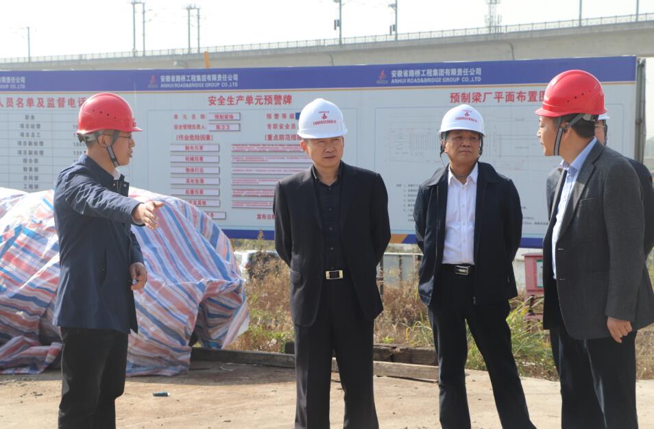 趙時(shí)運先后深入安徽路橋集團承建的蕪黃高速路基03標、安徽路橋公司承建的蕪黃高速07標項目,實(shí)地查看了橋面梁生產(chǎn)基地以及官田沖大橋、湖墩頭大橋鋼梁架設等施工現場(chǎng),并在蕪黃高速07標項目召開(kāi)座談會(huì ),聽(tīng)取集團系統蕪黃高速四家單位8個(gè)標段項目部工作情況匯報。