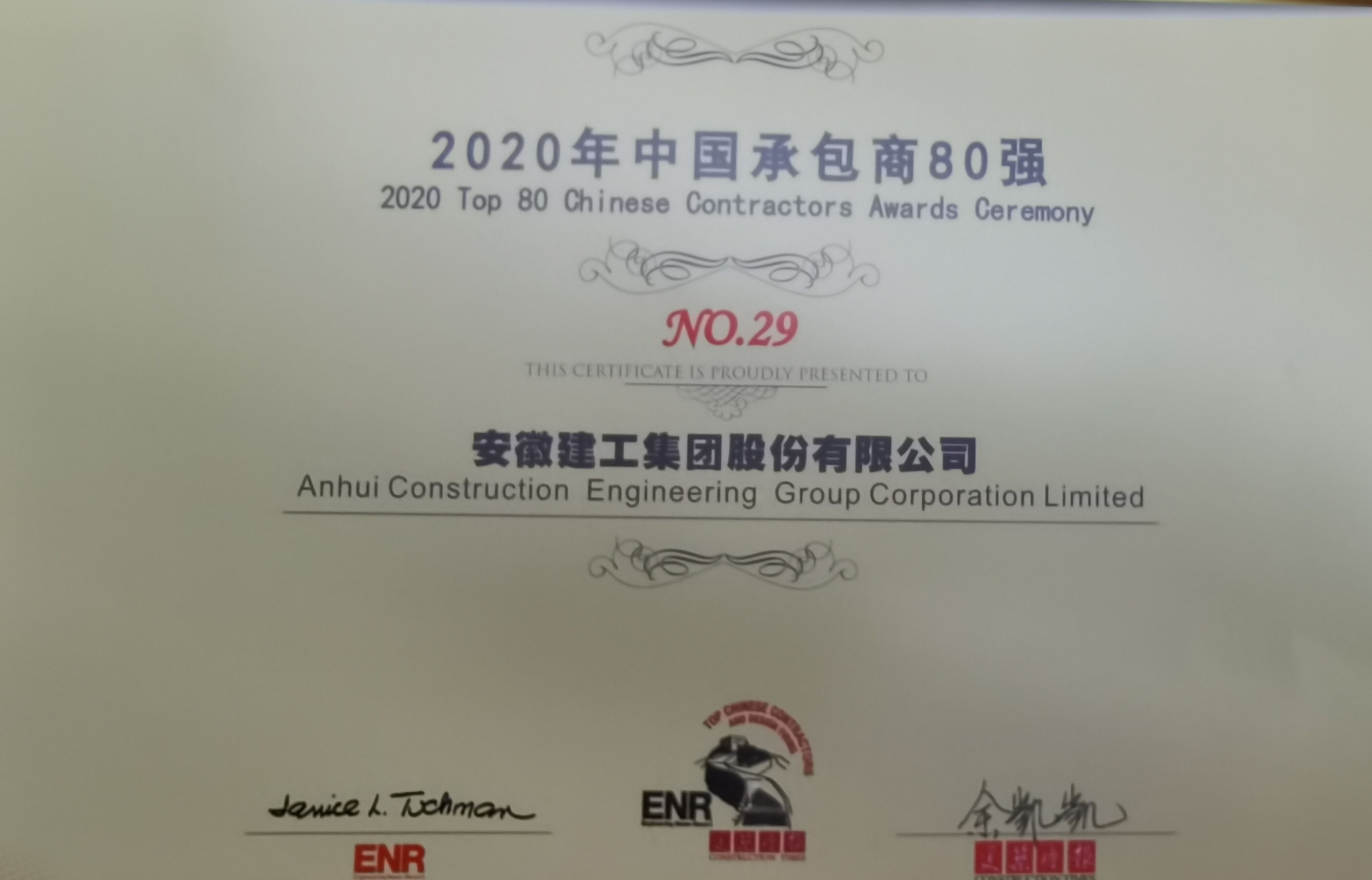日前,由美國《工程新聞?dòng)涗洝?ENR)和中國《建筑時(shí)報》兩家權威媒體共同主辦的“中國承包商80強和工程設計企業(yè)60強”頒獎典禮在江蘇南通隆重舉行。會(huì )上發(fā)布了2020年度“中國承包商80強”榜單,安徽建工集團股份有限公司位列第29位。
