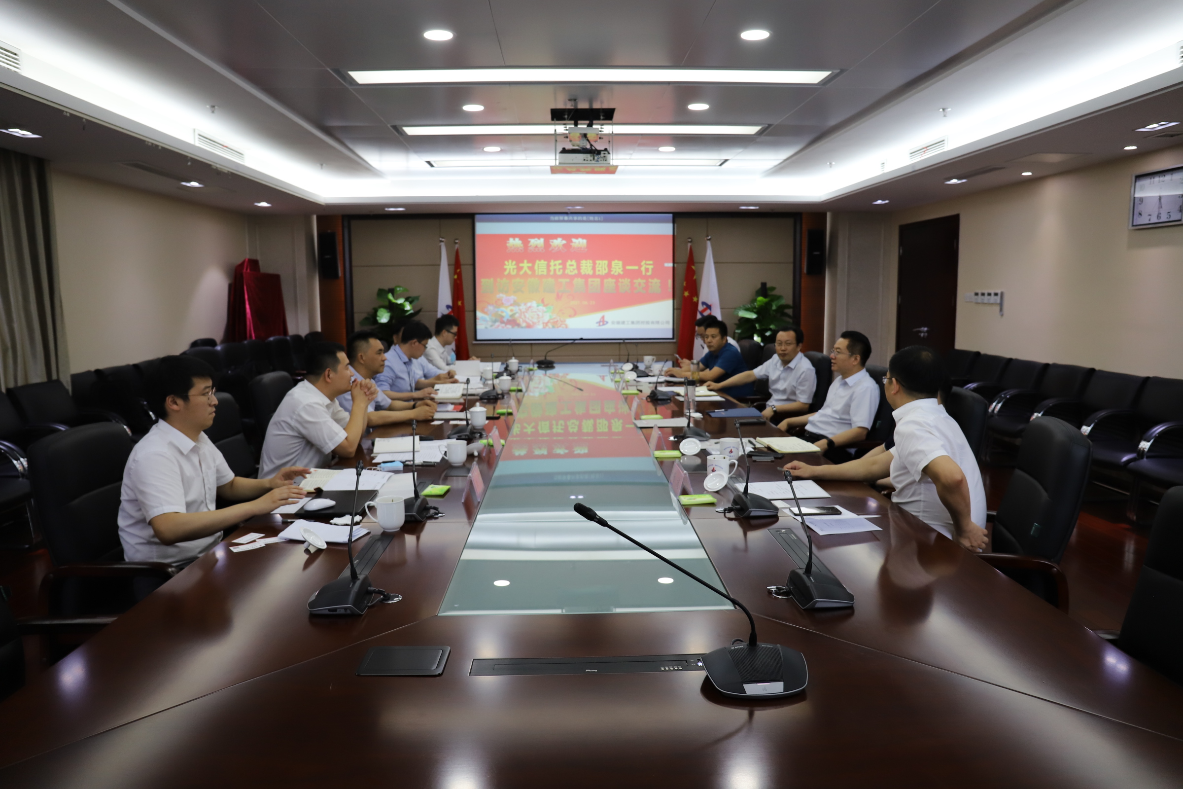 6月23日下午,建工控股黨委副書(shū)記、總經(jīng)理劉家靜在安建國際大廈會(huì )見(jiàn)光大信托總裁邵泉一行并召開(kāi)座談會(huì )。