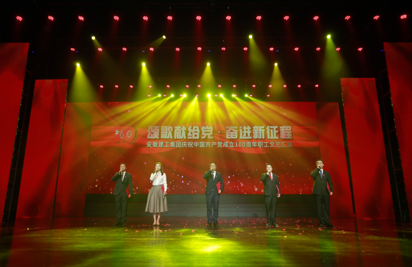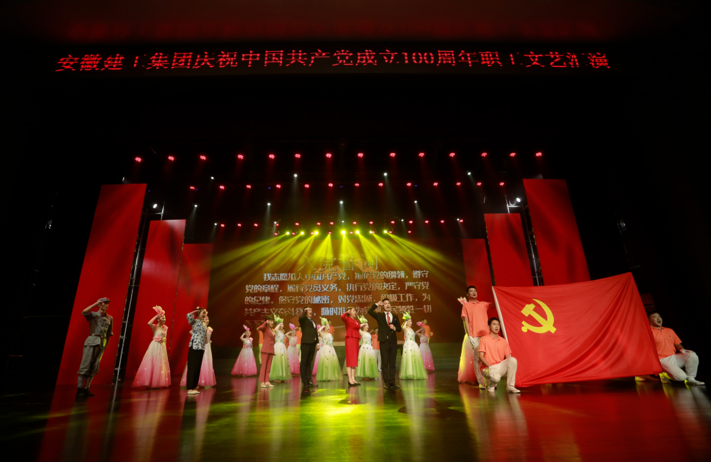 6月30日下午,安徽建工集團“頌歌獻給黨·奮進(jìn)新征程”慶祝中國共產(chǎn)黨成立100周年職工文藝匯演在安徽省歌舞劇院舉辦,紅色旋律感人至深,嘹亮頌歌催人奮進(jìn)。 整場(chǎng)演出主題鮮明、節奏明快、催人奮進(jìn),共分為“頌歌獻給黨”“禮贊建工人”和“奮進(jìn)新征程”三個(gè)篇章,分別以父女對話(huà)、“十三五”成果視頻展播、具有代表性典型性集團優(yōu)秀黨員勞模講述先進(jìn)故事進(jìn)行開(kāi)篇。來(lái)自20家基層單位和集團機關(guān)的700余名演職人員用心用情、載歌載舞,通過(guò)情景合唱、情景朗誦、歌舞、小品、音詩(shī)畫(huà)等形式,重溫中國共產(chǎn)黨走過(guò)的波瀾壯闊的百年輝煌歷程,謳歌建黨100年來(lái)的豐功偉績(jì),向黨的百年華誕獻禮。節目緊緊圍繞集團生產(chǎn)經(jīng)營(yíng),通過(guò)回顧整合重組整體上市、實(shí)施“投資+施工總承包”模式、推進(jìn)裝配式建筑、統籌做好疫情防控和復工復產(chǎn)等一個(gè)個(gè)鮮活事例,集中展示集團“十三五”期間取得的輝煌成就,講述建工人不忘初心、牢記使命,苦干實(shí)干推動(dòng)高質(zhì)量發(fā)展,邁向千億安徽建工新征程的奮斗故事。 文藝匯演精彩紛呈,不時(shí)贏(yíng)得全場(chǎng)熱烈掌聲?!俺礁杞o黨聽(tīng),我把黨來(lái)比母親……”,安徽路橋氣勢恢宏的大合唱《在燦爛陽(yáng)光下 唱支山歌給黨聽(tīng)》拉開(kāi)了匯演的序幕。技師學(xué)院舞蹈《紅色搖籃》、安徽交航音詩(shī)畫(huà)《紅船頌》、安徽建科舞蹈《映山紅》、安徽路港情景表演《長(cháng)征路上》、安徽水利情景合唱《百年征程》展現了中國共產(chǎn)黨人百年接續奮斗,團結帶領(lǐng)人民開(kāi)辟偉大道路、建立偉大功業(yè)、鑄就偉大精神。在安徽交航《紅船頌》誦讀人的領(lǐng)誓下,大家重溫了入黨誓詞,場(chǎng)面莊嚴肅穆而又鼓舞人心。集團機關(guān)和安建財務(wù)大鼓說(shuō)唱《安徽建工展輝煌》、安徽安裝舞劇《穿越時(shí)空的對話(huà)》、海外事業(yè)部情景朗誦《建工人 我為你頌唱》、安徽二建情景舞蹈《眾志成城 建工力量》、路橋集團小品《婚禮現場(chǎng)》、安建投資情景劇《建工新時(shí)代 奮斗正當時(shí)》、安徽建機情景合唱《星辰大?!?、安徽路橋情景舞蹈《旗幟》再現了建工人凝聚在黨的旗幟下,和企業(yè)同呼吸、共命運。歌舞類(lèi)節目美輪美奐,安徽三建《我們迎來(lái)了好時(shí)代》、安建總承包《花開(kāi)中國》、安建地產(chǎn)《潮起江淮》、安建建材《小夢(mèng)想大夢(mèng)想》、安徽一建《再唱山歌給黨聽(tīng)》傾情演繹對黨的真摯祝福和愛(ài)黨愛(ài)國愛(ài)企的赤子情懷。集團中層代表、優(yōu)秀黨員、先進(jìn)代表及安建建材和服務(wù)中心逾70名職工共唱《不忘初心》,表達了安徽建工全體黨員干部職工不忘初心、牢記使命,在“十四五”新征程中,聽(tīng)黨話(huà)、感黨恩、跟黨走,用忠誠和實(shí)干在打造千億安徽建工、建設新階段現代化美好安徽宏偉征程中彰顯國企責任、扛起使命擔當。匯演在集團領(lǐng)導與演職人員、觀(guān)眾全體同唱《沒(méi)有共產(chǎn)黨就沒(méi)有新中國》歌聲中落下帷幕。 集團領(lǐng)導,所屬單位主要負責人,集團機關(guān)部門(mén)主要負責人,2020年度集團優(yōu)秀共產(chǎn)黨員、勞動(dòng)模范、先進(jìn)生產(chǎn)工作者代表,部分職工代表及黨員干部職工等逾600名職工在現場(chǎng)觀(guān)看,2萬(wàn)余名職工通過(guò)網(wǎng)絡(luò )直播收看,網(wǎng)上直播觀(guān)看達60余萬(wàn)人次。