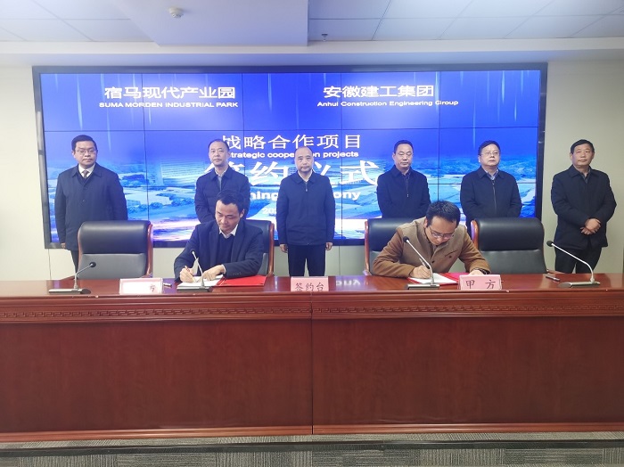 2月28日,宿州馬鞍山現代產(chǎn)業(yè)園區舉行集中簽約儀式,安徽建工集團與宿州馬鞍山現代產(chǎn)業(yè)園區管委會(huì )簽訂戰略合作框架協(xié)議。宿州市委常委、副市長(cháng)祖鈞公致辭并見(jiàn)證簽約,宿馬園區黨工委書(shū)記、管委會(huì )主任易茂林主持簽約儀式,安建總承包黨委書(shū)記、總經(jīng)理張沖代表集團與宿馬園區黨工委委員、宿馬投資集團黨委書(shū)記、董事長(cháng)潘驥成簽約。