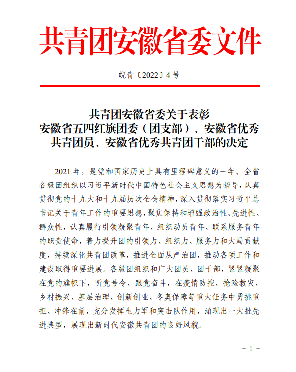 “安徽省優(yōu)秀共青團員”是共青團安徽省委授予省內團員的最高榮譽(yù),主要的目的是通過(guò)表彰在各個(gè)領(lǐng)域涌現出的先進(jìn)典型,激勵廣大團組織和團員,團干部比學(xué)趕超、再創(chuàng )佳績(jì)。我院學(xué)子獲評“安徽省優(yōu)秀共青團員”,不僅是對學(xué)生個(gè)人的肯定,更是對學(xué)院團學(xué)工作的肯定,彰顯學(xué)院在堅持立德樹(shù)人根本任務(wù)、貫徹“三全育人”理念方面取得的良好工作成效。