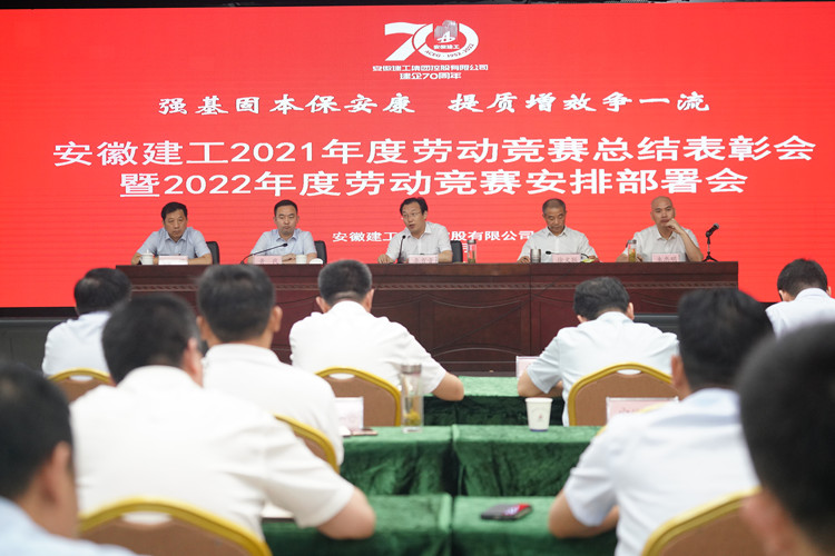 為引導和激勵廣大干部職工立足崗位接續奮斗,快速掀起大干快上勞動(dòng)熱潮,高標準高質(zhì)量完成全年目標任務(wù),為打造千億安徽建工、智慧安徽建工、綠色安徽建工、幸福安徽建工貢獻力量,6月21日上午,集團公司在安建大廈三樓會(huì )議室舉辦2022年度勞動(dòng)競賽、“安全生產(chǎn)月”活動(dòng)啟動(dòng)儀式暨2021年度勞動(dòng)競賽總結表彰大會(huì )。股份公司黨委副書(shū)記、總經(jīng)理李有貴,股份公司黨委委員、副總經(jīng)理黃代,股份公司副總經(jīng)理朱忠明參加會(huì )議。股份公司黨委副書(shū)記、控股公司工會(huì )副主席徐文聯(lián)主持會(huì )議。