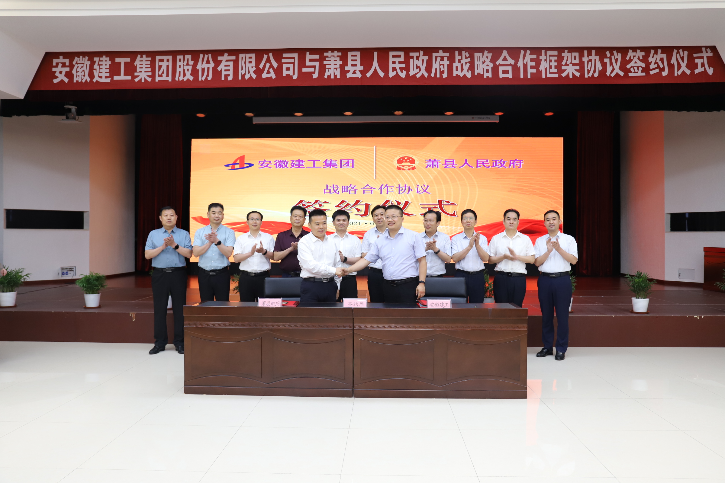 6月18日下午,安徽建工集團與蕭縣人民政府在安建大廈3樓會(huì )議室舉行戰略合作協(xié)議簽約儀式。建工控股領(lǐng)導王汪苗、李有貴出席活動(dòng)并見(jiàn)證簽約儀式。蕭縣縣委副書(shū)記、代縣長(cháng)朱新華,建工股份董事長(cháng)王厚良分別在儀式上致辭。股份公司黨委副書(shū)記、董事、副總經(jīng)理孫學(xué)軍主持簽約儀式。