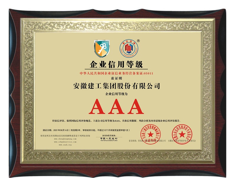 安徽建工集團獲評安徽省AAA級信用企業(yè)