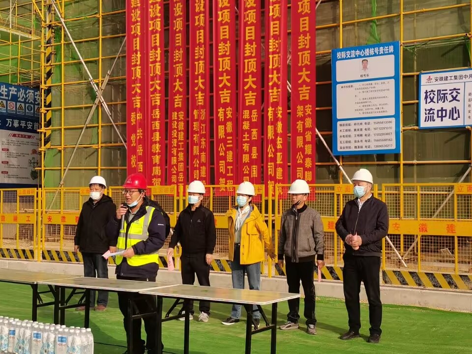11月6日上午,由安徽建工集團股份有限公司海外事業(yè)部承建的岳西黨校建設項目校際交流中心主體結構封頂,這是該項目首個(gè)封頂的單體建筑。岳西縣委黨校常務(wù)副校長(cháng)徐少宏、縣教育局局長(cháng)聶咸群、安徽建工股份副總經(jīng)理、海外事業(yè)部黨總支書(shū)記、總經(jīng)理邢應梅出席封頂儀式。