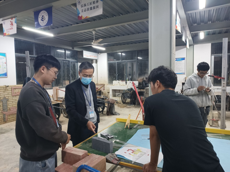 黨委委員、副院長(cháng)周元清就砌筑作品對教練和選手進(jìn)行技術(shù)指導